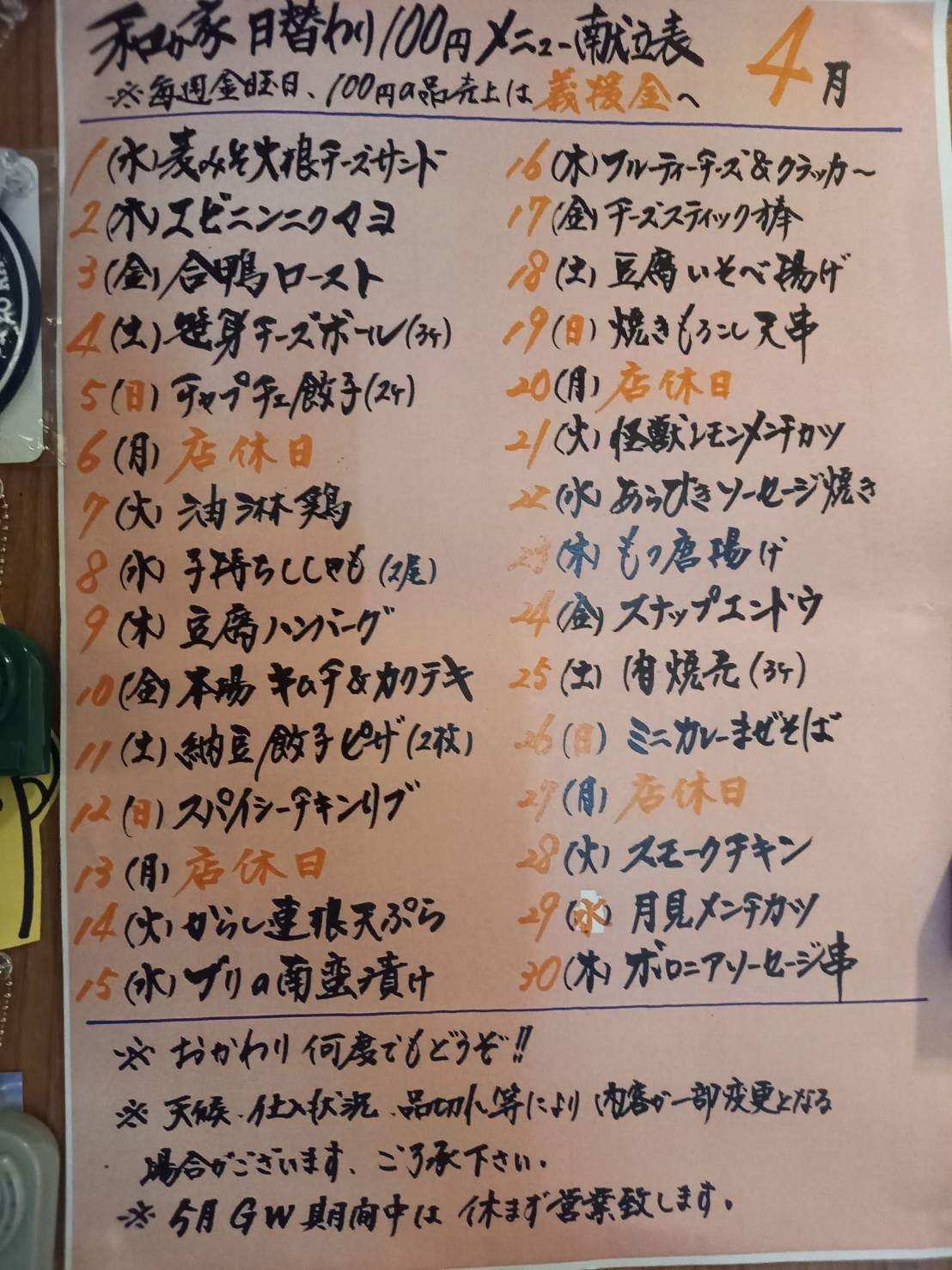 【2026年4月の100円メニュー】★毎週金曜日は義援デー